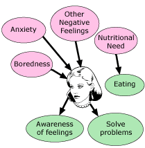 A normal person eats as controlled by needs of nutrition. A person with an eating disorder may wrongly interpret discomfort as hunger.